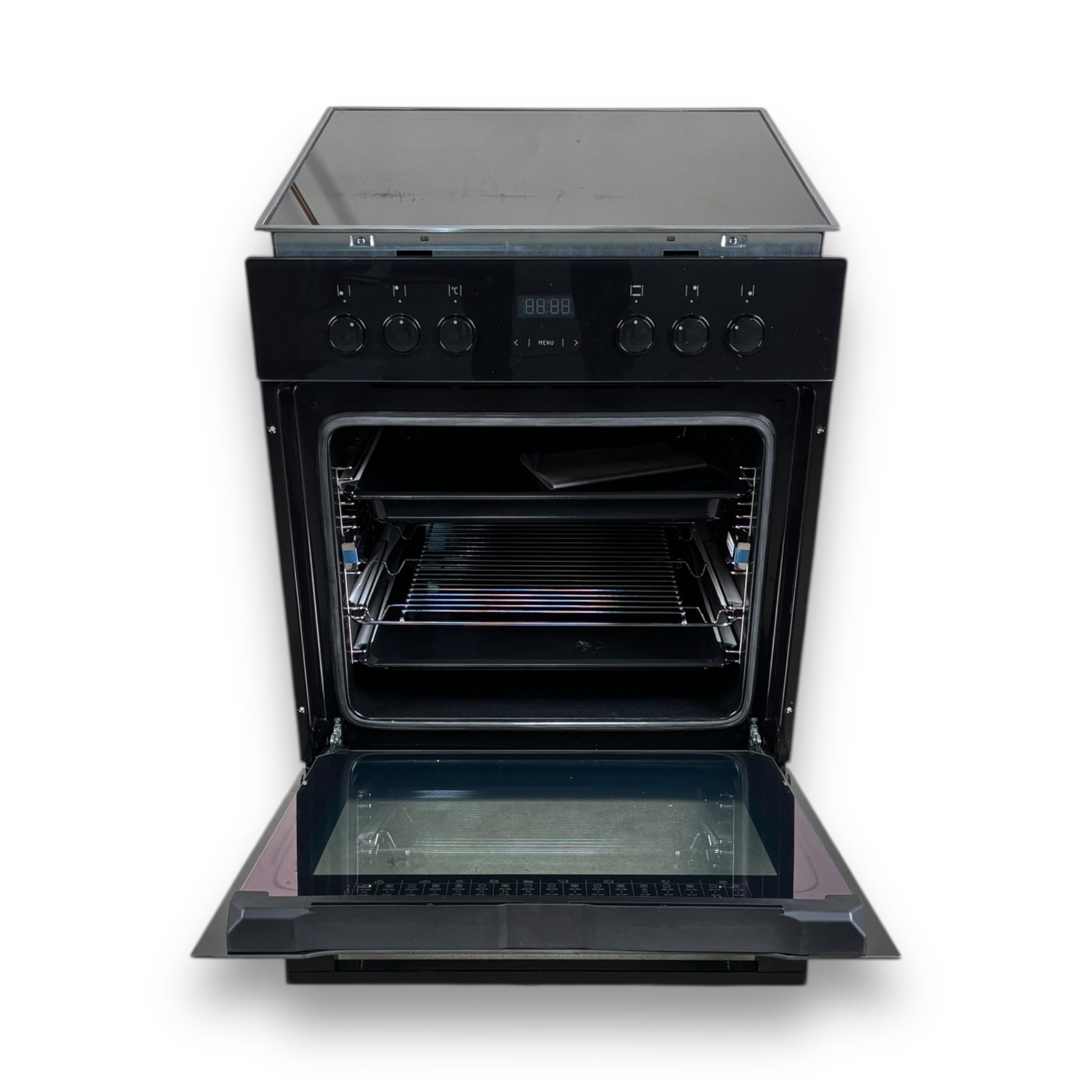 Einbauherdset, 1fach Teleskopauszug/-züge, 1x75 %, 1x Fettpfanne, 1x emailliertes Backblech, 1x Grillrost, Bedienungsanleitung |