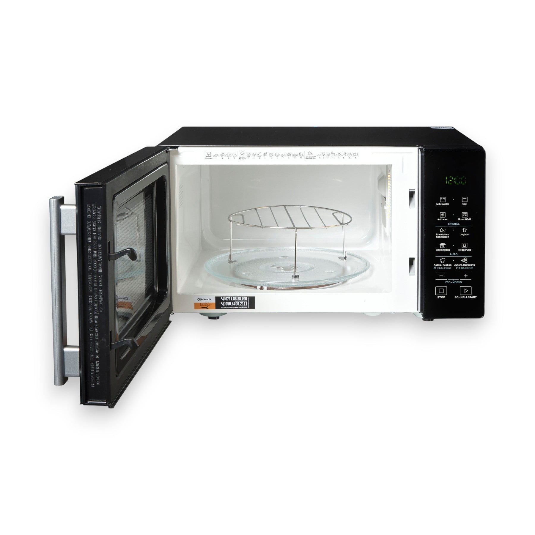 | Top-Features | Rapid Defrost-Funktion: mit dieser Funktion können Sie Tiefkühlkost schnell und gleichmäßig auftauen und sie so wieder in einen frischen Zustand versetzen. Rapid-Start-Funktion: Auf Knopfdruck Schnellstart der Mikrowelle auf hoher Leistungsstufe in 30-Sekunden-Schritten. Ideal zum schnellen Erhitzen von klaren Suppen, Getränken oder Speisen mit hohem Wassergehalt. |