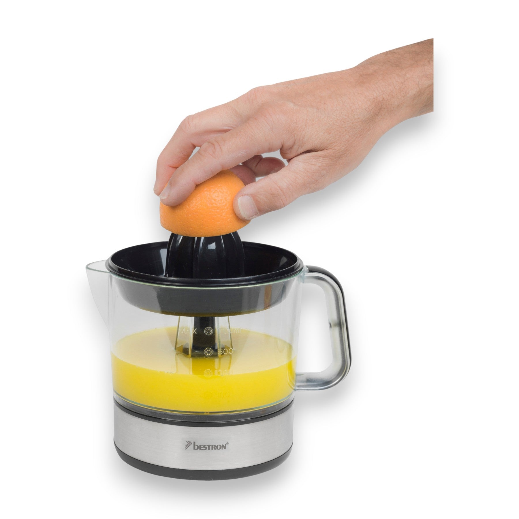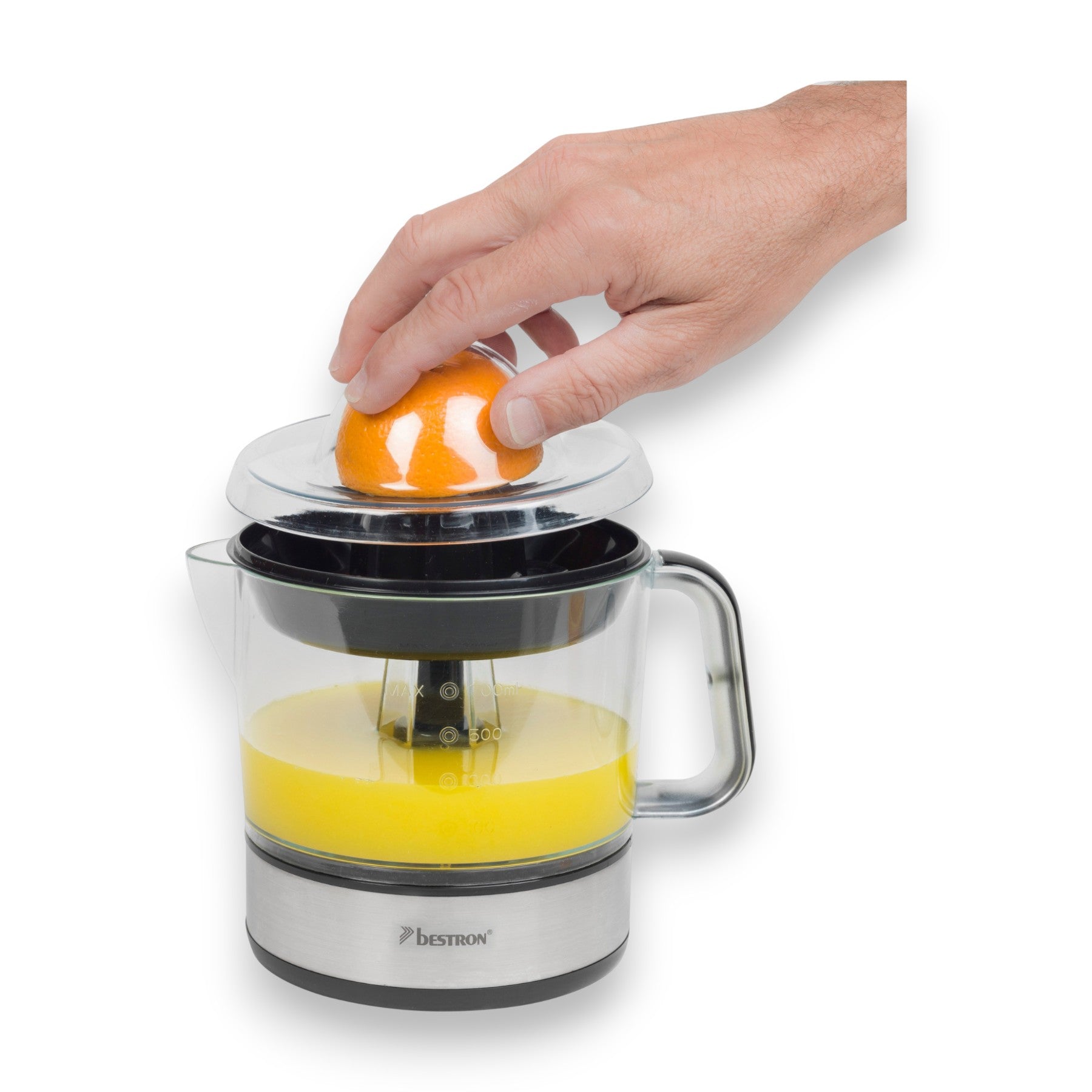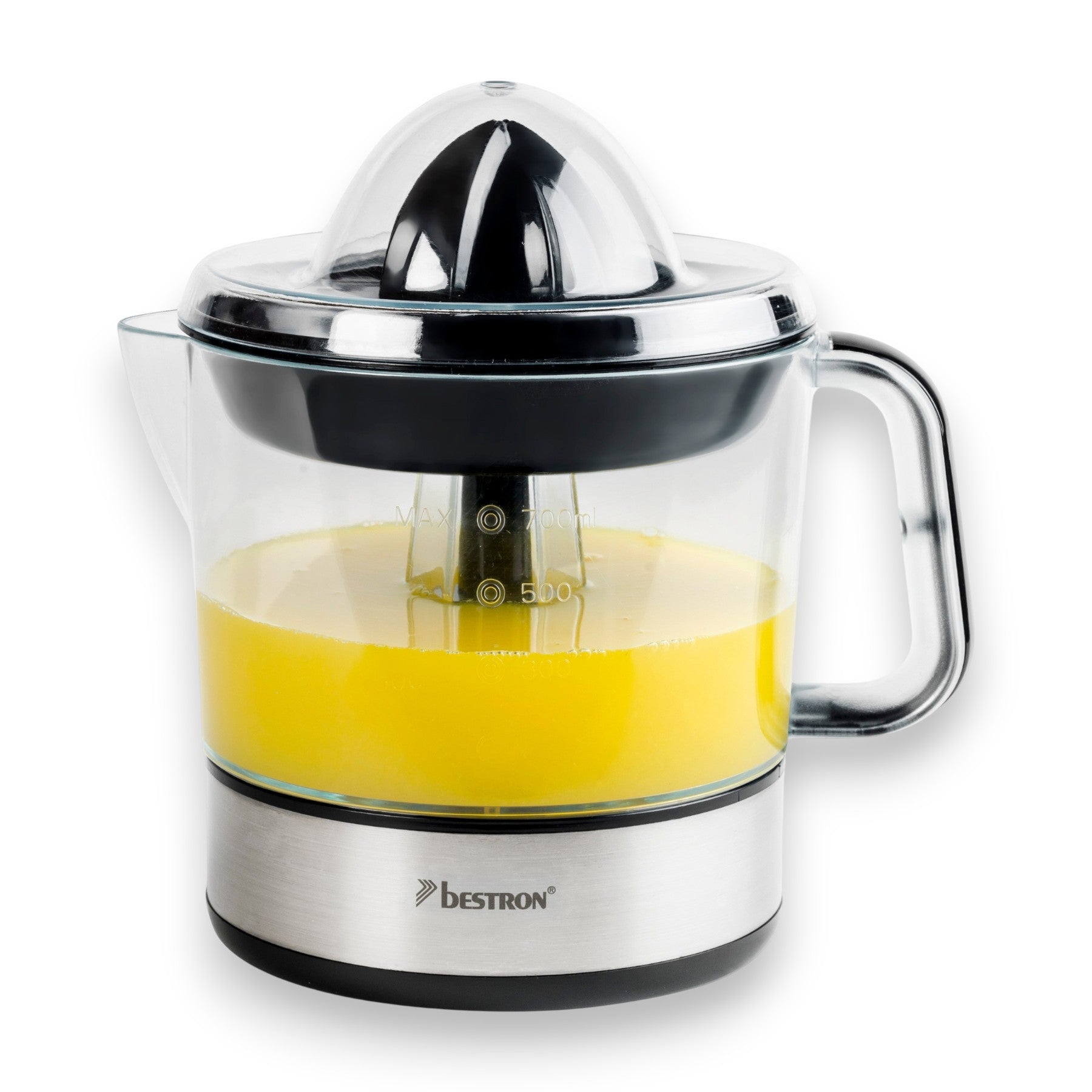Bestron Zitruspresse elektrisch ACJ350 40 W 700 ml mit 2 Presskegeln & Frischhaltedeckel