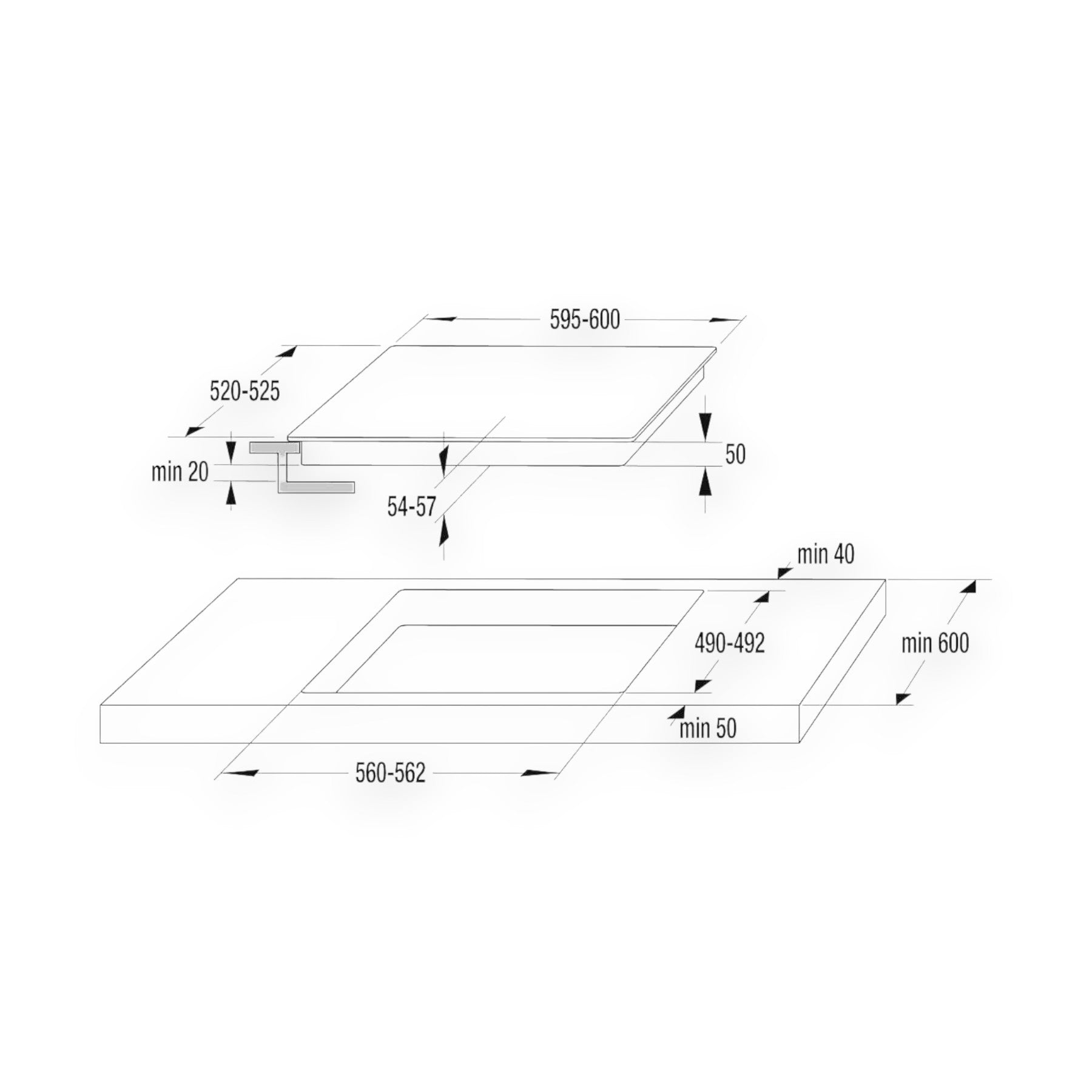 | Breite Ausschnitt Kochfeld | 56 cm |