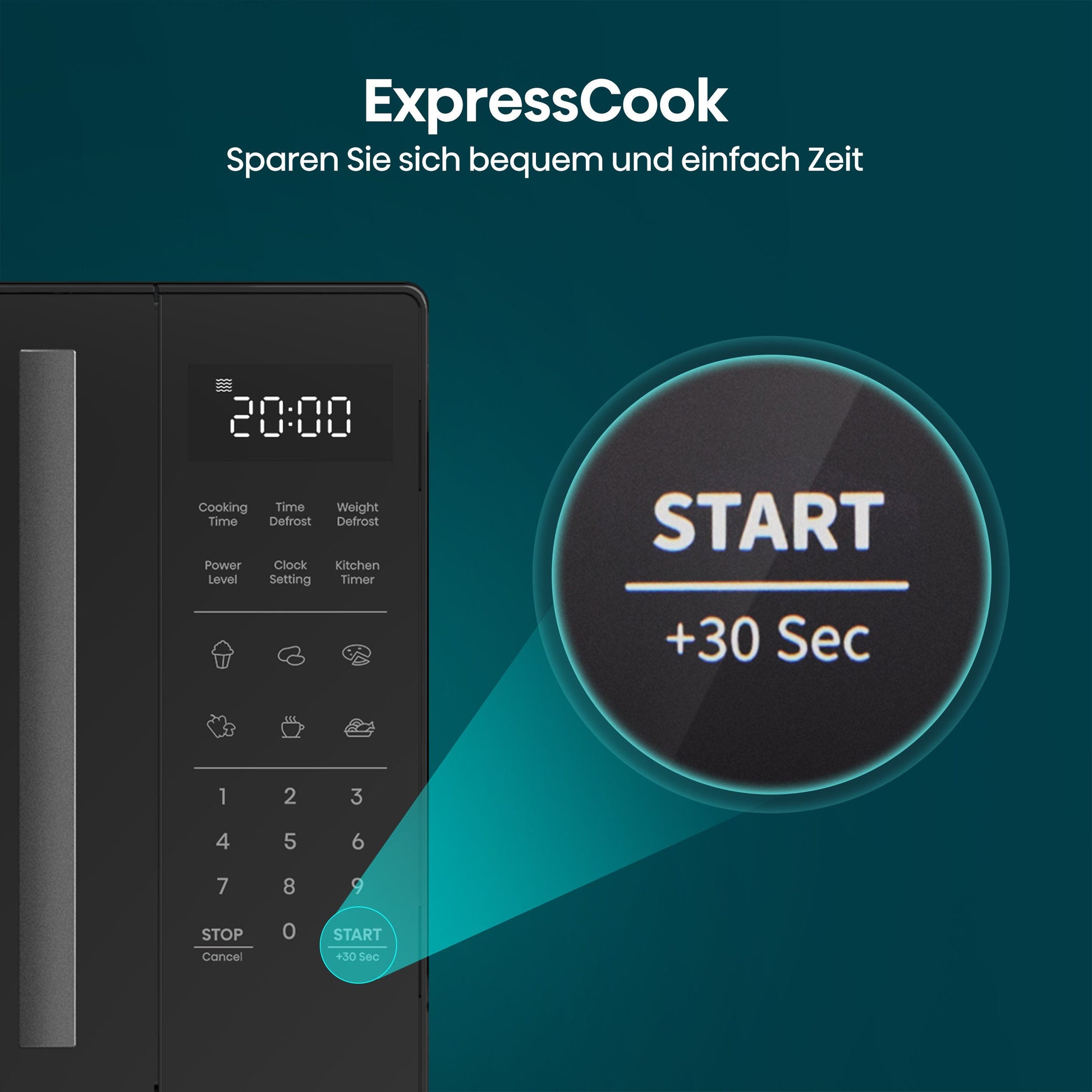 Bei diesem Mikrowellenherd können Sie verschiedene Leistungsstufen und Zeitvorgaben wählen, um die volle Kontrolle zu haben. Maßgeschneidertes Garen hilft Ihnen, das gewünschte Ergebnis zu erzielen.